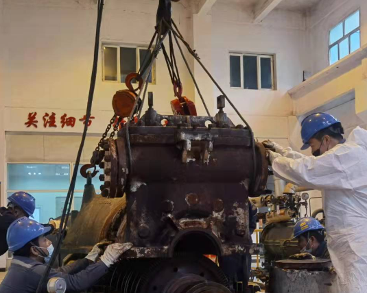 待大蓋被成功吊起后,又會(huì)小心翼翼地操控著冠航手拉葫蘆,將大蓋緩緩放置到提前準(zhǔn)備好的合適存放位置上。整個(gè)過(guò)程中,每一個(gè)動(dòng)作、每一個(gè)細(xì)節(jié)都是為了防止大蓋出現(xiàn)損壞,畢竟大蓋的完好與否關(guān)乎著后續(xù)維修工作能否順利開展以及汽輪機(jī)能否再次高效投入運(yùn)行呀。